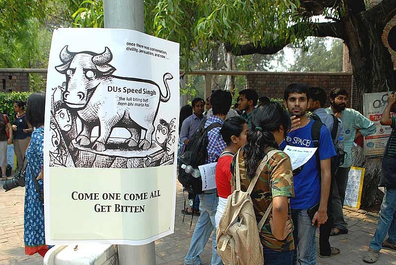 But how did this idea of a course overhaul come to be? The move gathered steam at the academic congress held last year, a brainwave of the vice-chancellor, who invited guests to speak on the virtues of a new curriculum. A four-year format was suggested, a task force was set up, and the ayes had it: the format was deemed to have been passed by a resolution. Teachers were taken by surprise, for the work on the rehaul started in September 2012 and went full throttle. Finally, at a hastily called emergency academic council meeting, held on a restricted holiday (December 24), the proposal for the overhaul was passed. The agenda papers of the meeting were made available to council members only two days before the meeting. Says Satish Despande, who teaches at the Delhi School of Economics and dissented at the meeting, “Not a single public document has been distributed for the rationale behind introducing the four-year course. So, all we are saying is, tell us why.”