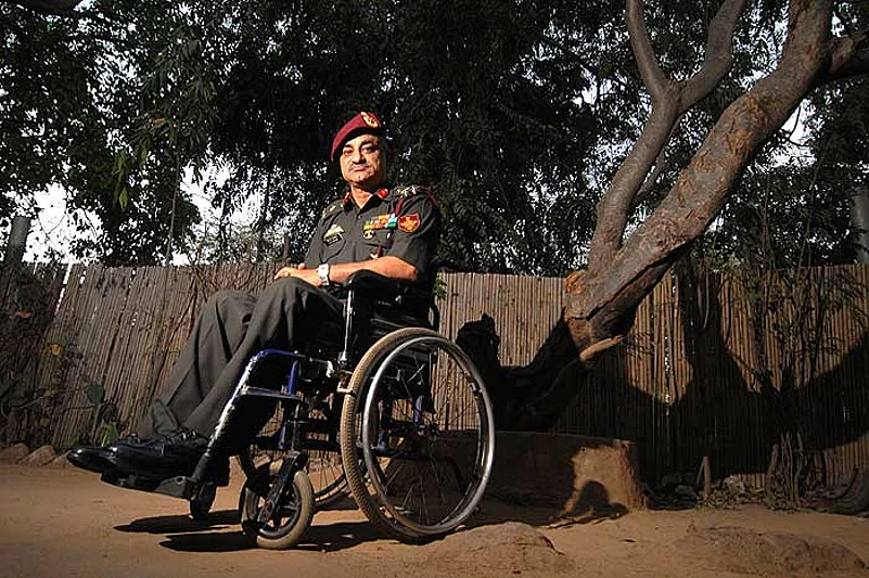 In March this year, when Outlook caught up with Brigadier Sunil Kumar Razdan, he was sitting in his garden patch, absorbed in tugging and releasing makeshift weights tied to the bark of a tree. “It’s a small pulley,” he explained, “with stones at one end, and a stupid chap at the other.” Even as you chuckled your way past his self-deprecating humour, it was clear this was a demonstration not just of an exercise routine, but of an extraordinary tenacity, worn like a humble matter of routine. It helped to explain why this brigadier had recently been approved for the rank of a major-general, making him the first wheelchair-bound officer to serve at this level in the history of the Indian army.