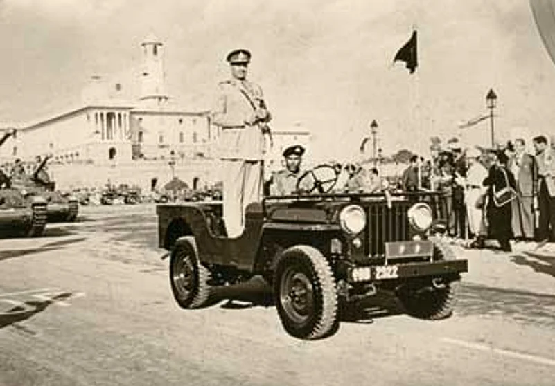 Leading a Republic Day Parade in the 1950s as General Officer Commanding, Delhi