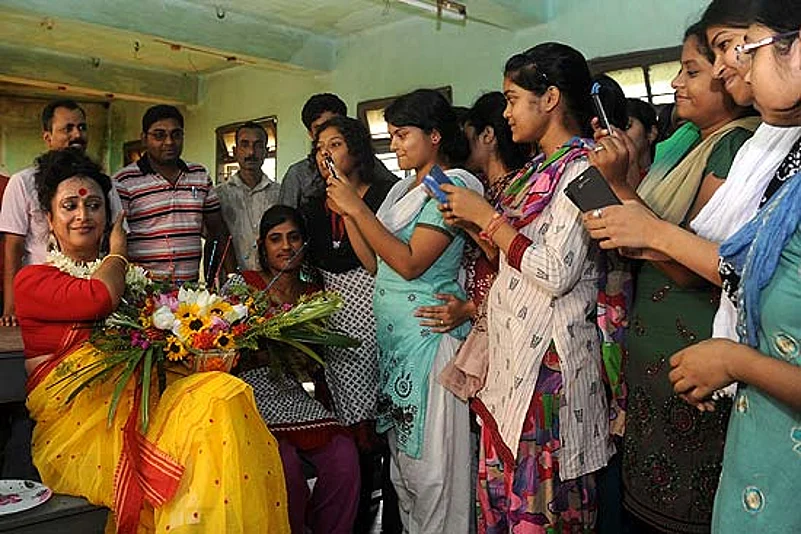 Back in Krishnanagar College, far removed from the debate, students are happy to get Manobi. “Since 2012 we have not had a principal. We are extremely happy that now we have someone to take our problems to,” says Dipa Roy, a Bengali Honours student. She says that the fact that Manobi is a transgender doesn’t bother any of her friends. “We know her. We saw her on Bigg Boss (she had appeared on the popular reality TV show). And now that we have met her we like her.”