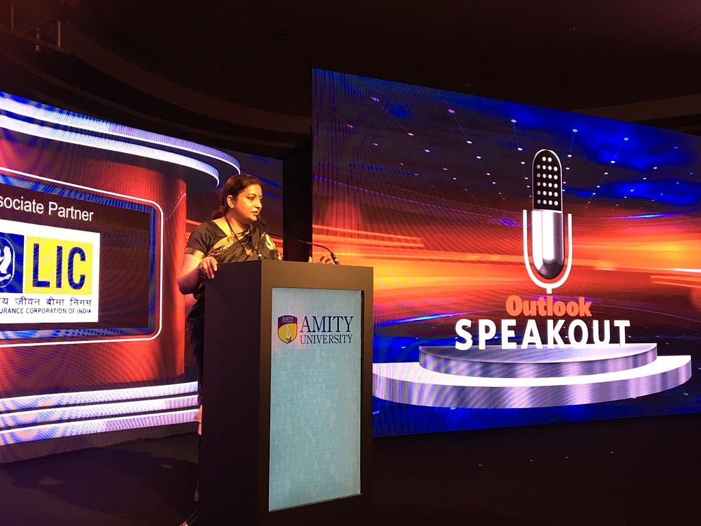 "Women alone are not responsible for bringing a change in perceptions about equality," said Union Textiles Minister Smriti Irani during her speech at Outlook's annual conclave SpeakOut on Friday.
