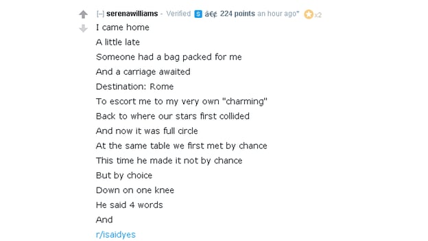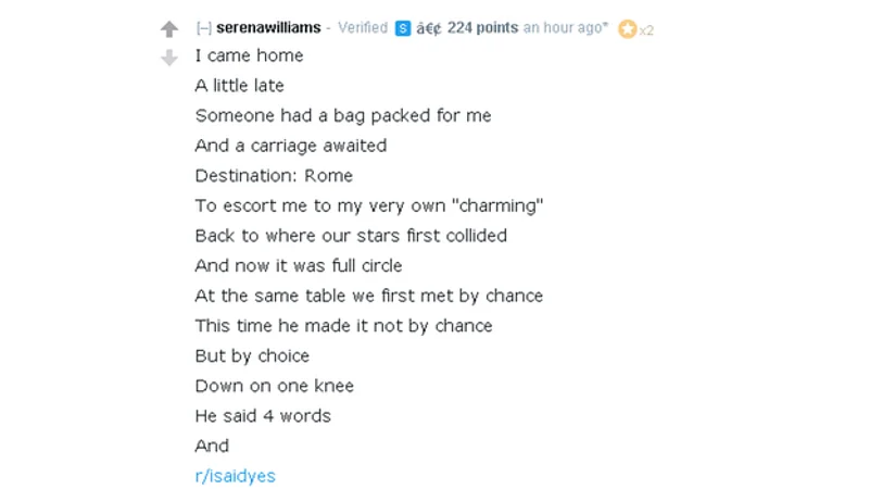 Serena Williams has used the social media platform Reddit to announce that she is engaged to its co-founder, Alexis Ohanian.