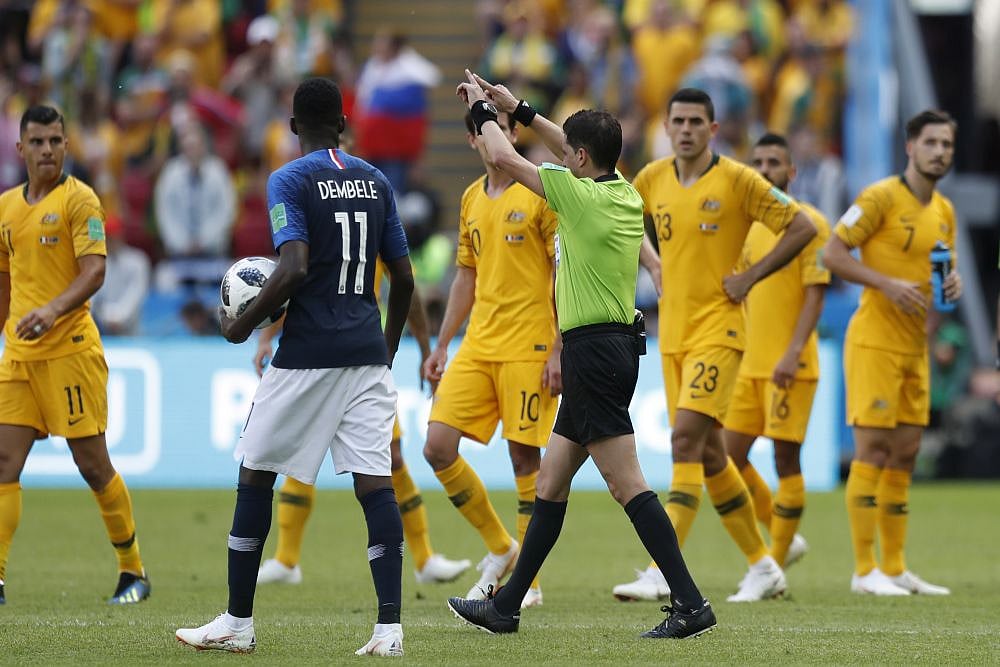 The Atletico Madrid star wrote his name into the history books after he went down under a tackle from Josh Rishdon in the penalty box in the second half of the Group C fixture. Referee Andres Cunha from Uruguay did not initially award a spot-kick but after viewing the VAR footage, ruled it was a penalty and Griezmann coolly slotted past Socceroos' goalkeeper Mathew Ryan at the Kazan Arena.