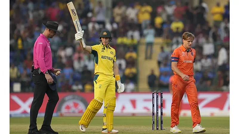 Maxwell (106 off 44 balls) blew away the Dutch attack to score his century off just 40 balls, while Warner struck 104 off 93 balls after Pat Cummins opted to bat at the Arun Jaitley Stadium. In the process, Maxwell bettered the earlier record of South Africa's Aiden Markram, who had smashed 106 off 49 balls against Sri Lanka at the same ground on October 7. Logan van Beek (4/74) and Bas de Leede (2/115) shared six wickets between them. Chasing the huge total, Netherlands never looked in the hunt as they were dismissed for a paltry 90 in 21 overs. Vikramjit Singh (25) top-scored for the Dutch, while Adam Zampa (4/8) picked up four wickets, while Mitchell Marsh (2/19) scalped two.