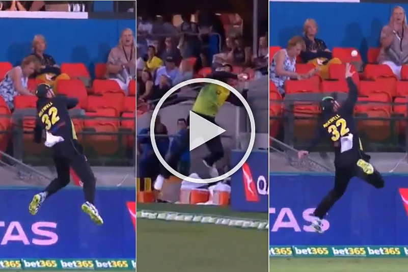 Australia all-rounder Glenn Maxwell on Saturday produced a stunning, juggling catch to dismiss South Africa captain Faf du Plessis during their rain-shortened one-off T20I match at Carrara Oval, Queensland.