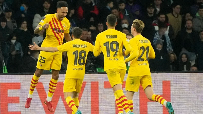 Frenkie de Jong scored with a long-range curler and newly signed striker Pierre-Emerick Aubameyang netted again for Barcelona, which had been held 1-1 at home in the first leg.