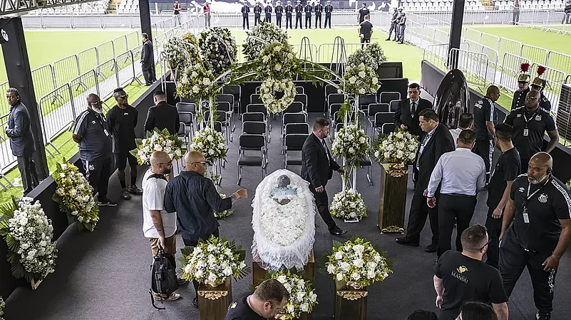 Thousands of mourners, including high school students and supreme court justices, filed Monday past the body of Pelé on the century-old field where he made his hometown team one of Brazil’s best. Pelé’s coffin, draped in the flags of Brazil and the Santos FC football club, was placed on the midfield area of Vila Belmiro.