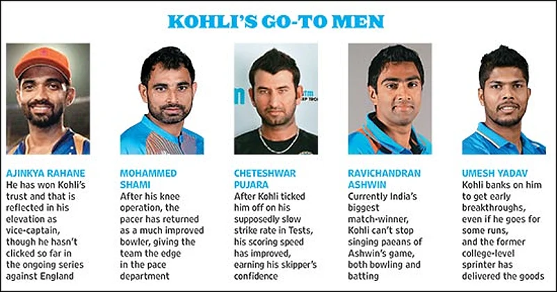 Not just the team, even chief coach Anil Kumble has. Horses for courses could also mean playing with only six batsmen and five bowlers, a combination that Kohli has already opted for with success, as seen in the three Tests in the ongoing England series. Kohli, 28, seems to have taken a liking for the high pressure job of the captain. Out of the 20 Tests he has captained, India has won 12, giving Kohli a 60 per cent success rate. He has lost only two Tests. Raj Kumar Sharma, his childhood coach at the West Delhi Cricket Academy, says his former ward wants to win all the time. “He always says he wouldn’t put his teammates under pressure or expect something from them that he himself can’t do. He backs his players and gives them space and freedom, and that’s why this team is on way to becoming the best that India has ever produced,” says Sharma.