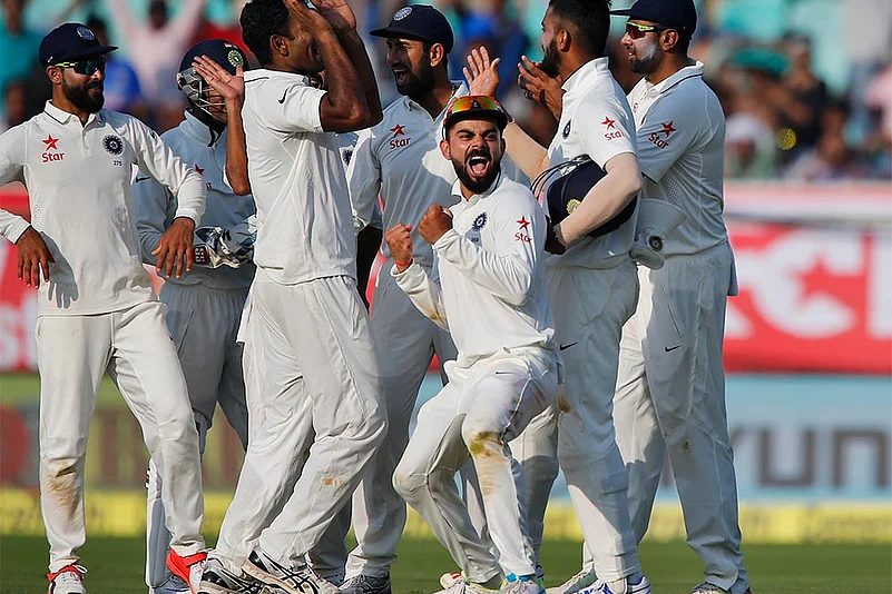 Again, when he took over Test captaincy from Dhoni in Adelaide in December 2014, he hammered centuries in both innings. That India lost by 48 runs was not due to his poor captaincy; off-spinner Nathan Lyon had triggered one of India’s batting collapses in the second innings. Since then, Kohli hasn’t looked back. Here are some statistics to savour: As skipper, he has batted in 33 innings, scored 1,861 runs at 60.03, and cracked seven tons—including a career high of 211 against New Zealand in Indore in October, and four 50-plus scores. Kohli, therefore, leads by example. “That’s the hallmark of an excellent captain,” says Prasanna. Unmukt Chand, the Delhi batsman who idolises Kohli, also talks about his insatiable hunger for success. “He’s a good, aggressive captain. He has played so much cricket that he knows what is important. Also, he’s street-smart. He has taken some bold decisions, under him the Indian team bonds well. He makes an effort to have everyone on the same page in terms of fitness and game-plan,” says Chand.