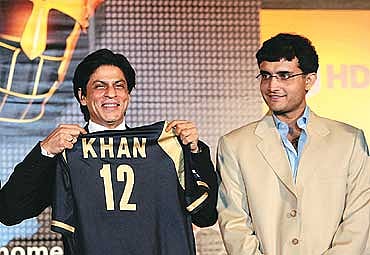 Shot ready: Shahrukh Khan with Knight Riders captain Ganguly