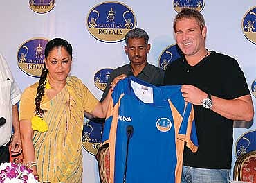 Right royal: Rajasthan CM Vasundhararaje with Shane Warne