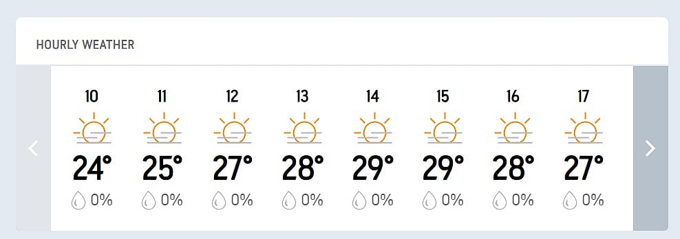 Let us take a look at the predicted hourly weather in Bengaluru on the third day of the opening India A vs South Africa A unofficial Test: