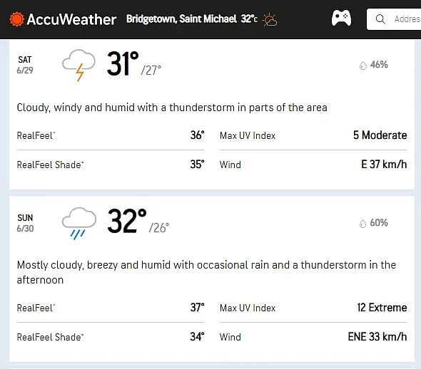 Bridgetown, Barbados Weather for June 29 and 30