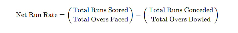 Net Run Rate (NRR) is essentially the difference between the average runs a team scores per over and the average runs they concede per over.