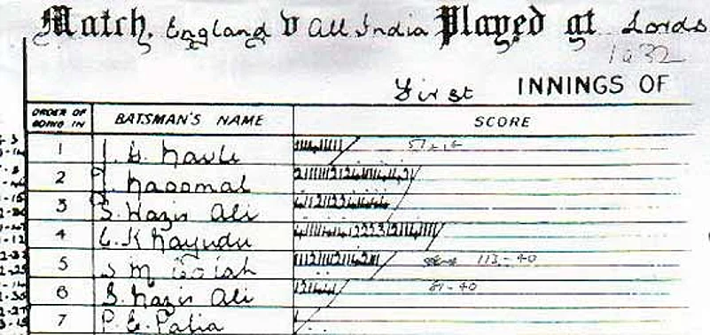 A scoresheet of the first Test at Lord’s, England v All India, June 25-28, 1932