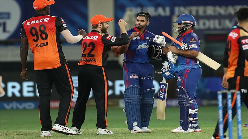 Delhi Capitals rode on a brilliant fast bowling performance from their South African duo Anrich Nortje and Kagiso Rabada to dismiss Sunrisers Hyderabad by eight wickets in an IPL 2021 match in Dubai o