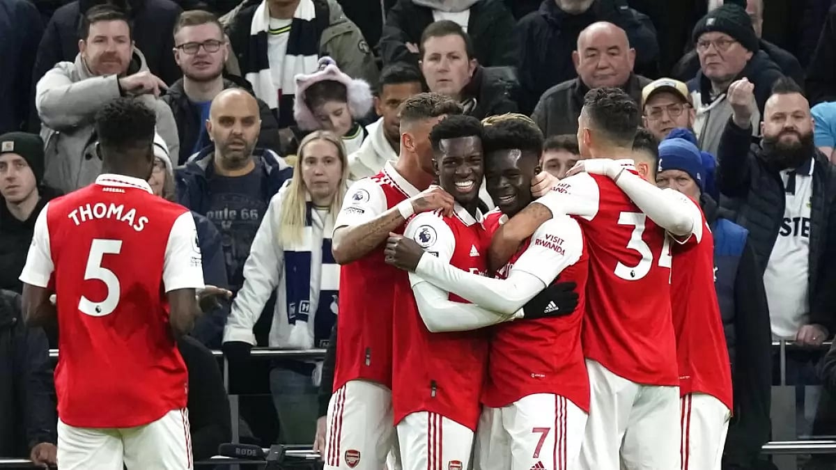 It was a deflected cross from the England winger that was bundled into his own net by Tottenham goalkeeper Hugo Lloris at the near post in the 14th minute. Then Saka led a break forward in the 36th and slipped a ball inside to captain Martin Odegaard, who lashed home a low shot from 25 meters.