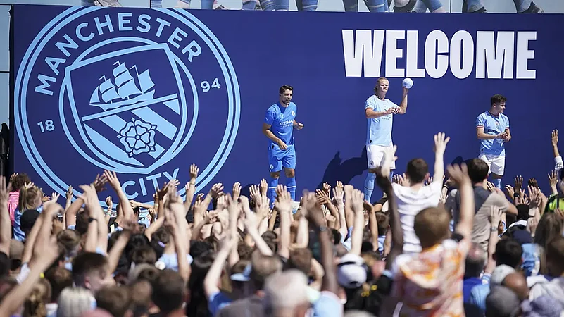Erling Haaland joined in the singing and chanting by Manchester City fans as the new signing was presented outside the stadium of the Premier League champions. It is a month since the Norway striker completed his move to City from Borussia Dortmund for 60 million euros (then $63 million) to seal his return to England, the country of his birth. Haaland has scored 20 goals in 21 appearances for Norway and netted 86 goals in 89 games in two and half seasons with Bundesliga side Borussia Dortmund. Haaland inherits the No. 9 jersey vacated by Manchester City's all-time leading scorer, Aguero, who left last year for Barcelona only to be forced into retirement by a heart problem.