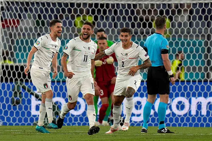 Italy protested vehemently for two handballs in the match but Dutch referee Danny Makkelie ruled to play on.