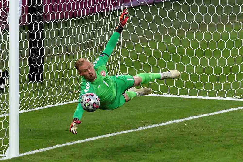 The laser pointer incident happened when England captain Harry Kane stepped up to take the penalty in extra time. A laser beam could be seen on the face of Denmark goalkeeper Kasper Schmeichel.