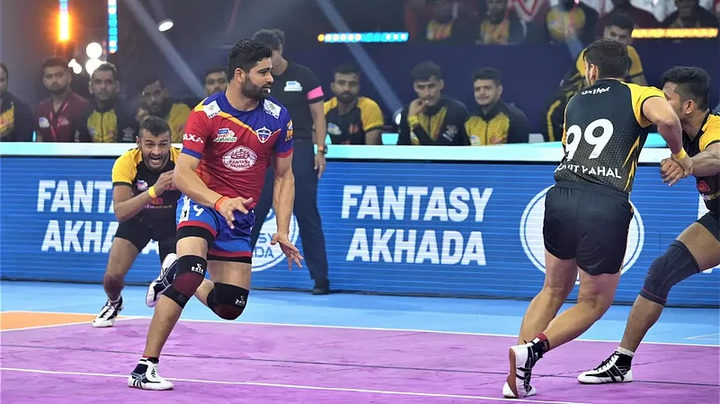 "We have all facilities available to us. We have a physio, trainer and massage specialist in the team. A dietitian is also there. Everything is planned accordingly and every staff member knows their role. GMR Group and PKSV Sagar Ji have provided us with all the facilities we need. Coaches play an important role in shaping us. They have also played kabaddi. They know better than us. They advise us when to rest, when to practice, and the dos and don'ts as well. That helps a lot for me and my workload management", the Dubki King told Outlook.