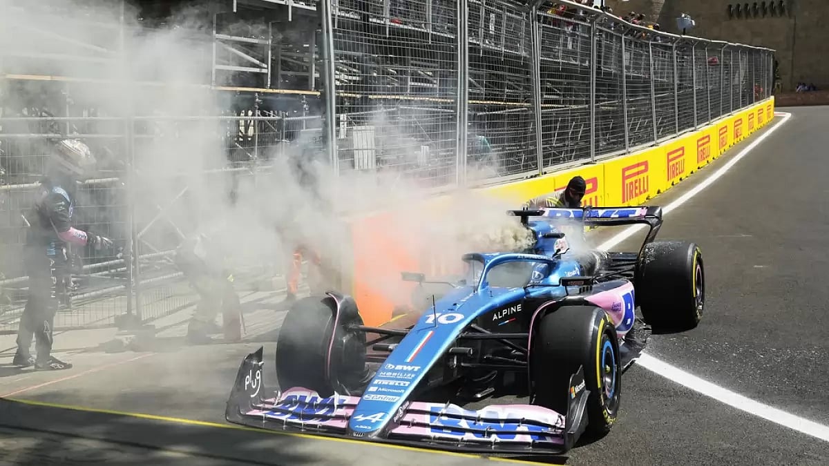 Gasly tried to drive back to the pits with flames visible at the rear of the car before parking on the side of the track. Thick black smoke poured from under the engine cover of the Alpine as Gasly watched a group of track marshals douse the fire. They used several fire extinguishers, leaving the car's cockpit full of foam.