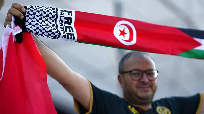Palestinian fans from across the Arab world — including descendants of those who fled or were forced from their homes in the 1948 war over Israel's creation — traipsed through the streets of Doha this week draped in Palestinian flags. Some also sported Palestinian armbands.