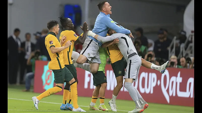 Australia became the 31st team to book their place at the FIFA World Cup 2022 after beating Peru on penalties in an inter-confederation play-off. Socceroos will join holders France, Denmark and Tunisia in Group D in Qatar. Substitute goalkeeper Andrew Redmayne saved Alex Valera's final kick to seal the win. This will be Australia's fifth World Cup in a row.