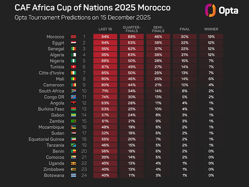 Morocco, Egypt – fresh from the fallout of Mohamed Salah's bust-up with Arne Slot – Algeria and Senegal are among the teams tipped to challenge by the Opta supercomputer.