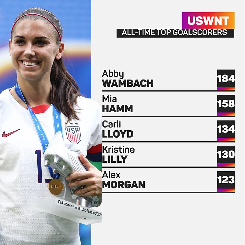 Morgan is one of the most recognisable and decorated players in the history of the USWNT, helping them win back-to-back World Cups in 2015 and 2019 as well as capturing an Olympic gold medal at London 2012.
