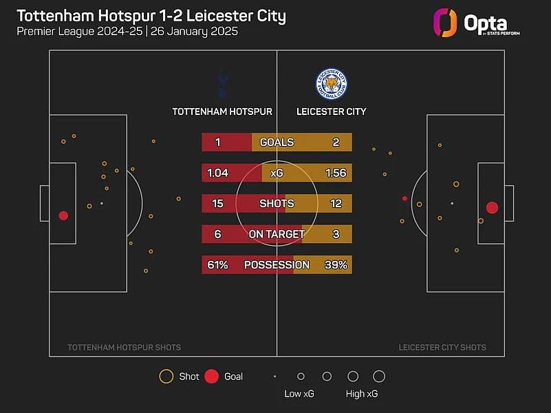 The pressure mounted further on Postecoglou last time out though, as Spurs gave up a first-half lead to lose 2-1 to struggling Leicester City in the Premier League, extending their winless run in the Premier League to seven matches – no side in the competitions has picked up fewer points since December 22 than them (one).