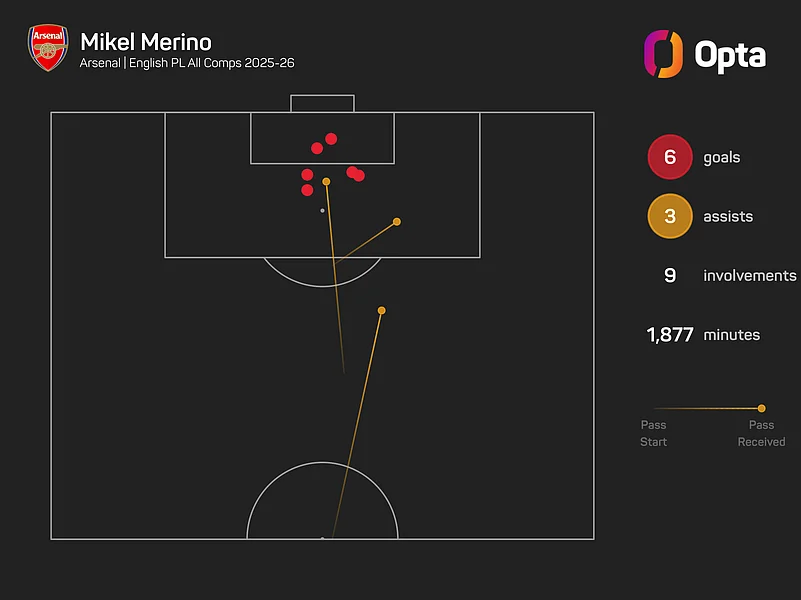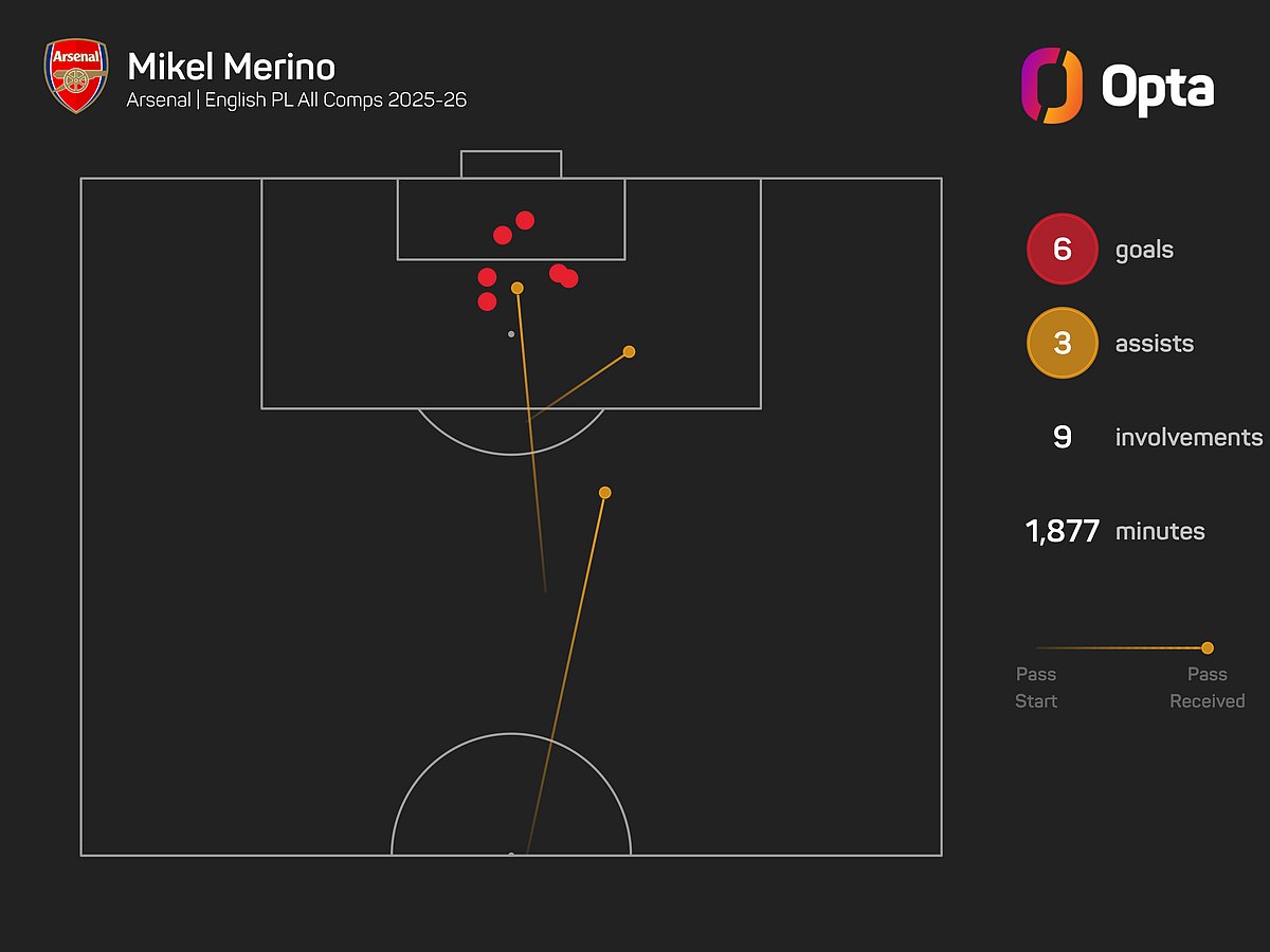 Merino has made 33 appearances for Arsenal in all competitions this term, scoring six goals in all competitions, the most among midfielders at the club.