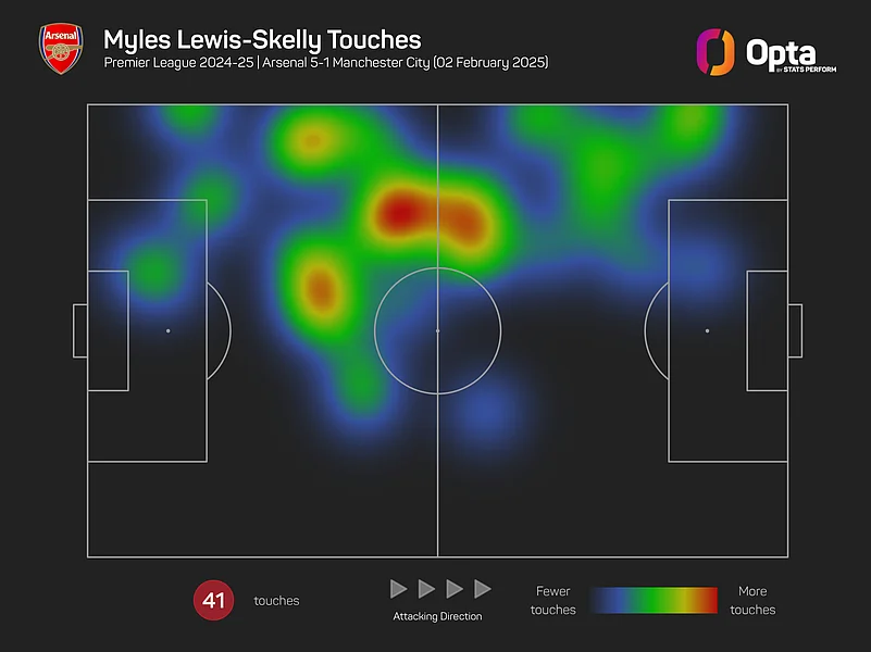 But it was Lewis-Skelly's overall performance that caught the eye, winning the most duels (seven) and most fouls (three) for Arsenal against Pep Guardiola's side.