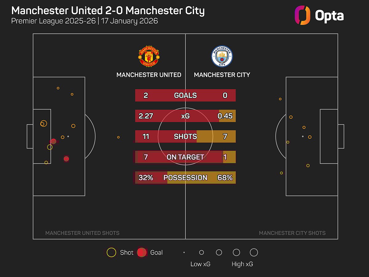 But, since the departure of Ruben Amorim on January 5, United rank first in the Premier League for xG (4.81), shots attempted (41) and shots on target (17) and have the best xG differential (+4.12) and best shot difference (+27).