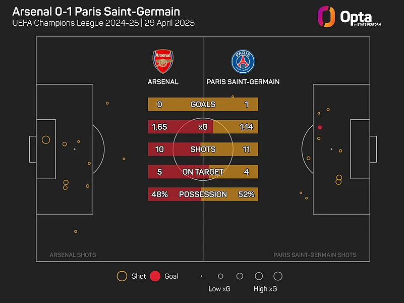 PSG had never beaten Arsenal in five previous meetings, including a 2-0 defeat at the Emirates Stadium during the league phase in October, but they took one step towards the final with a 1-0 victory on Tuesday.