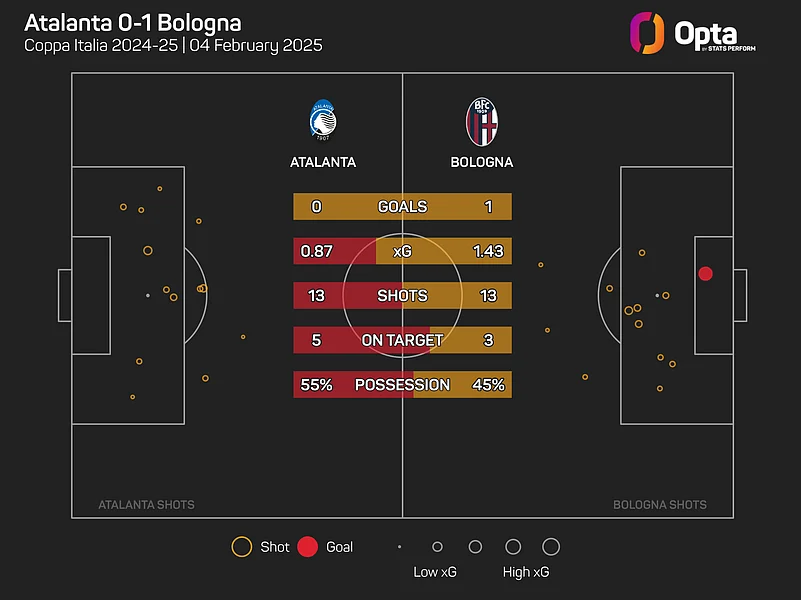 And the visitors were worthy of their win, registering an expected goals (xG) total of 1.43 from their 13 efforts to Atalanta's 0.87 from the same number of attempts.