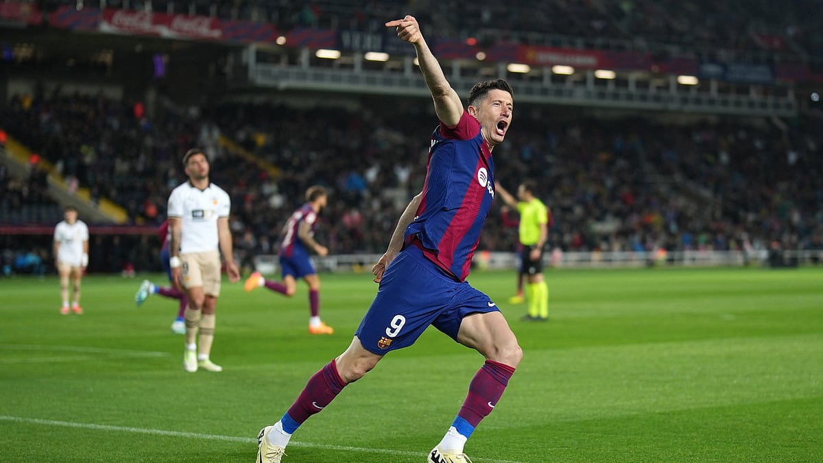 Barcelona striker Robert Lewandowski scored a second-half hat-trick to help his side fight back to claim a hard-fought 4-2 win over Valencia, who were leading 2-1 when they were reduced to 10 men just before the break. (More Football News)