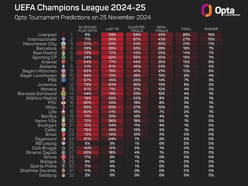 Ahead of this week's fifth round of matches, the Opta supercomputer gave Bayern a 75% chance of reaching the last 16, either via automatic qualification or the playoffs.