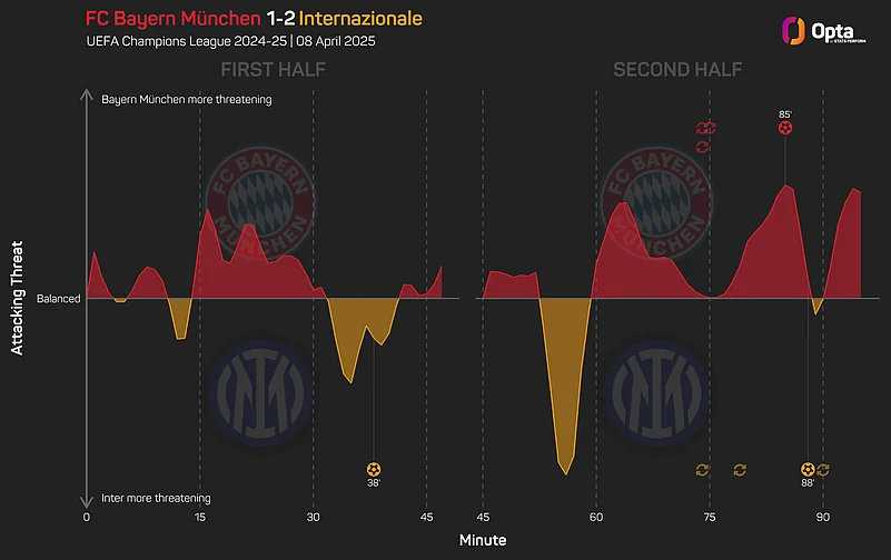 Inter captain Lautaro Martinez scored the opener in the 38th minute after Bayern hit the post through Harry Kane, who was found totally unmarked by Michael Olise.