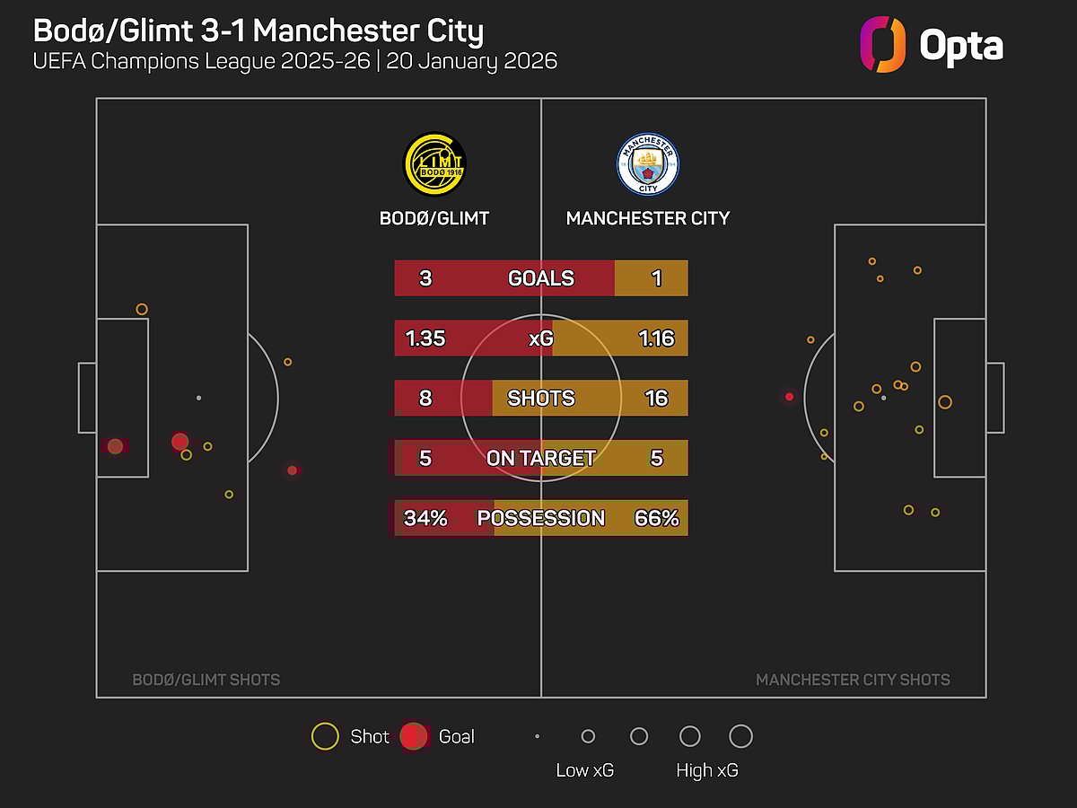 Rayan Cherki pulled one back almost immediately, but City's hopes of a comeback were dashed by Rodri's dismissal, and Bodo could have won more handsomely.