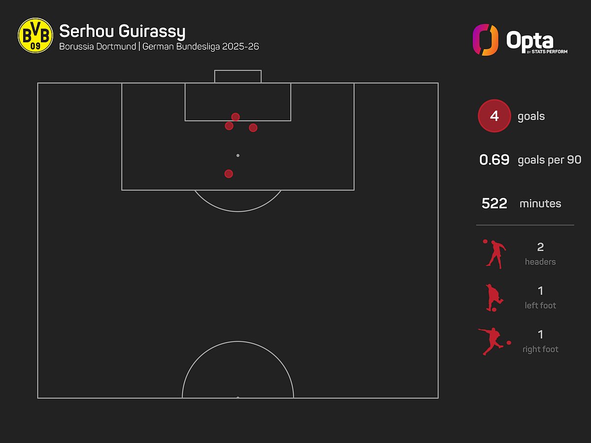 Only Harry Kane (12), Luis Diaz, and Can Uzun (both five) have scored more goals in the Bundesliga this season than Serhou Guirassy (four), and the Dortmund star will be hoping to finally break his duck against his former club.