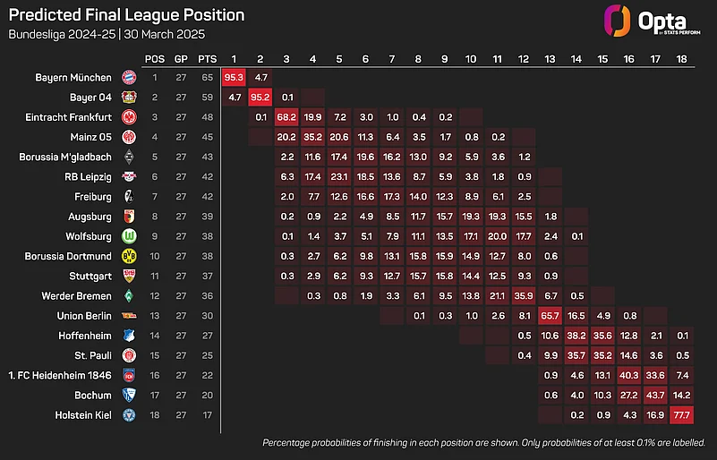 Dortmund finished inside the top four of the Bundesliga table in just 3% of Opta's supercomputer simulations, and have an uphill task for their final seven games.