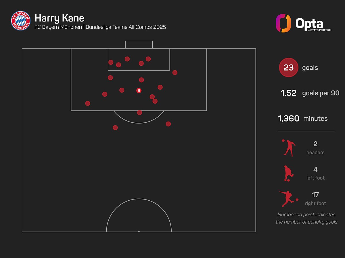Kane also recently scored his 12th goal on the seventh matchday of this Bundesliga season – in the competition's history, only Borussia Dortmund's Serhou Guirassy scored more goals after seven matchdays (13) during his time with Stuttgart in 2023-24.