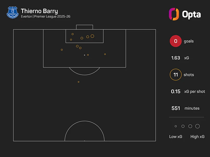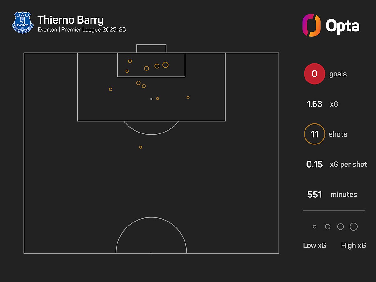 Barry joined the Toffees from Villarreal for £27m (€30m) in pre-season and has appeared in all 13 of their Premier League matches this campaign, starting six times.