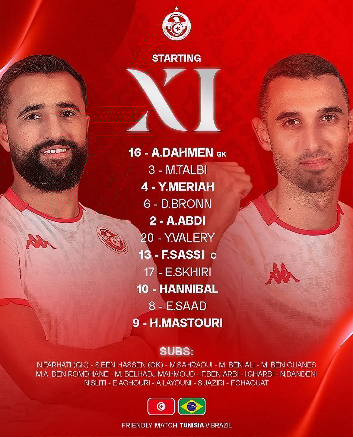 It seems Brazil have suffered yet another injury with Real Madrid defender Eder Militao going down. Meanwhile, Tunisia make a change as Ismaël Gharbi replaces Hazem Mastouri.