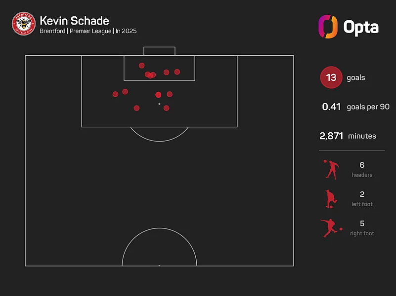 Schade has also scored more Premier League goals in 2025 than any other Brentford player (13), while seven of his goals this year have put them ahead in games, and six of them have been winning goals.