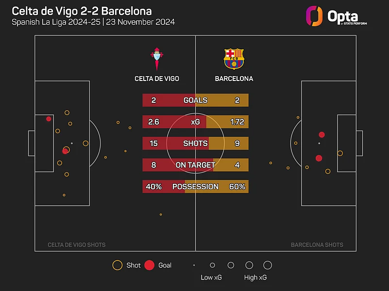 Going into Saturday's game, Barcelona had gone 24 matches without a draw in LaLiga, winning 20 and losing four.