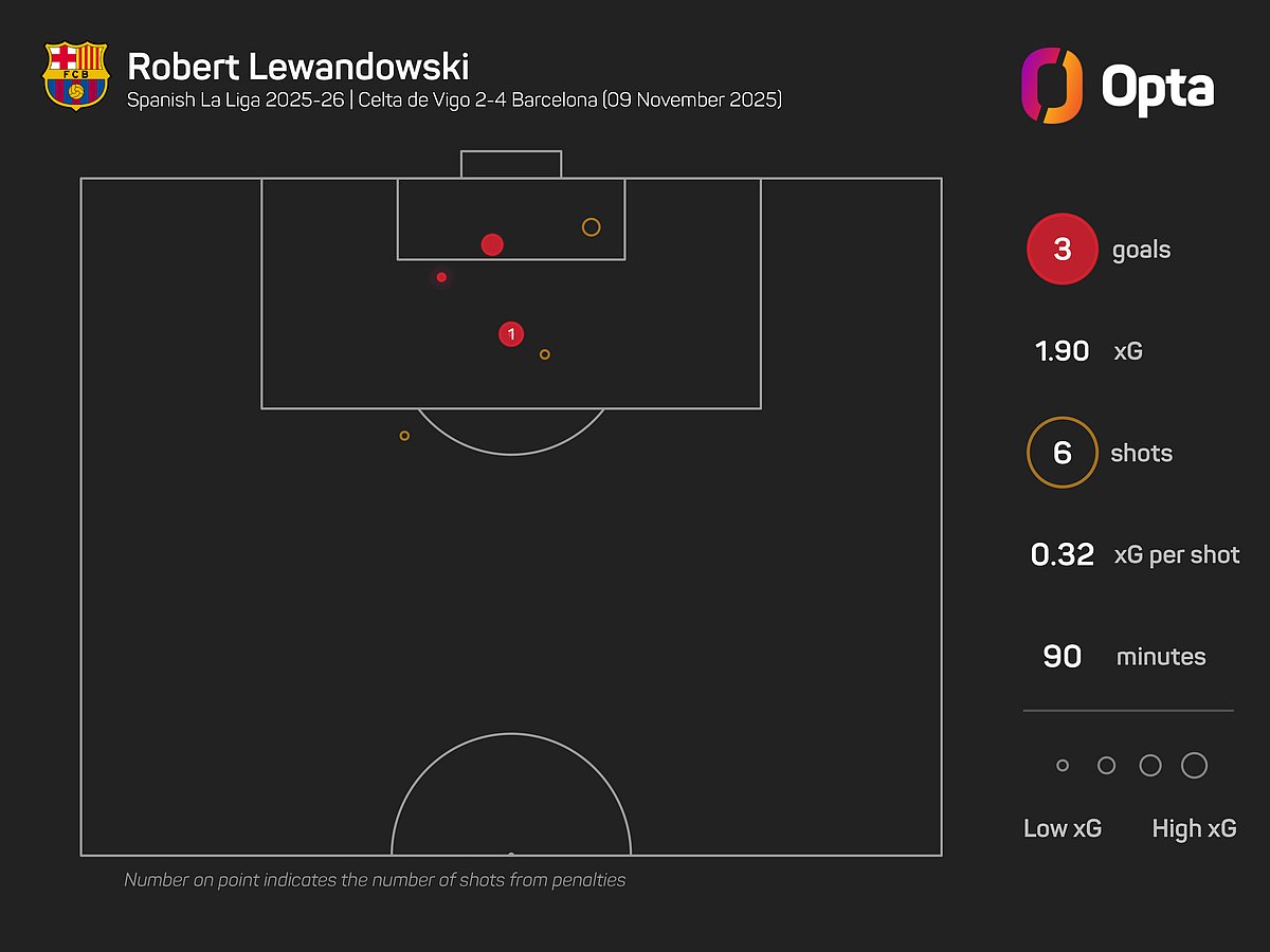 Celta again got back on terms quickly via a powerful finish from Iglesias, but Barca went into half-time 3-2 up, with Ionut Radu failing to keep Lamine Yamal's strike out despite getting two hands to the ball at his near post.