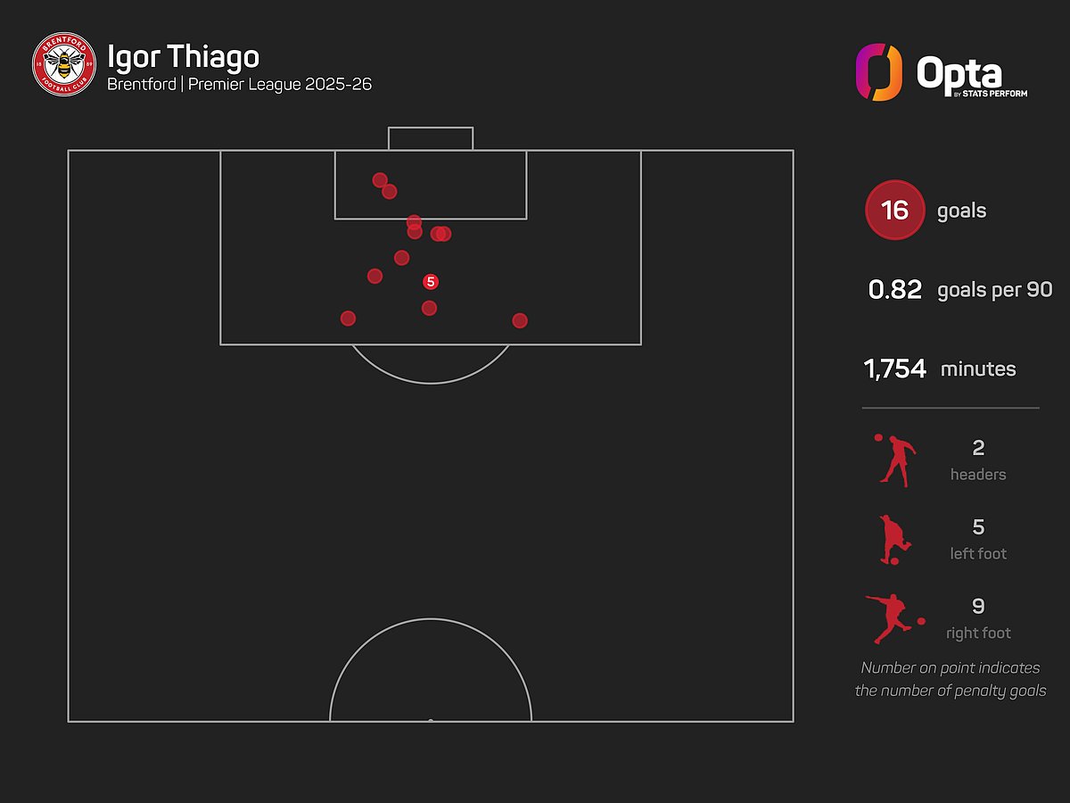 After enduring a mini goal drought, Igor Thiago is back among the goals, netting five times in his last two Premier League games, but he has been helped by his team-mates.