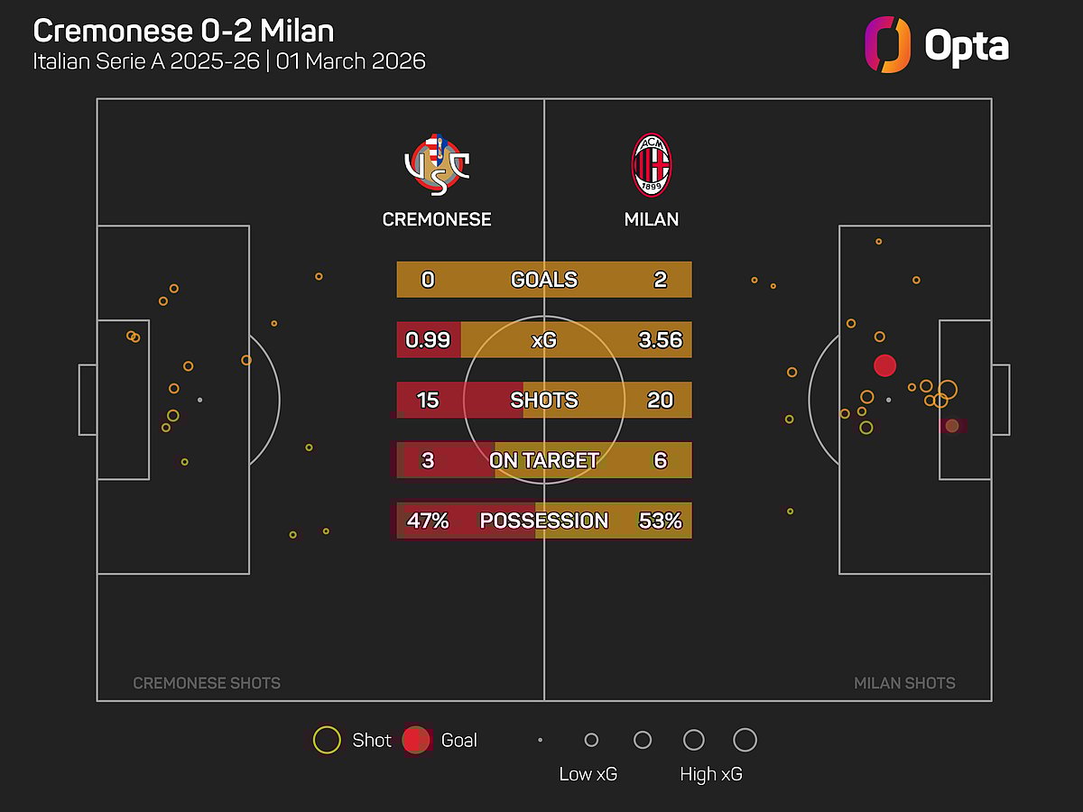 It looked as though they may be frustrated again on Sunday, but a late show handed them a deserved victory, having racked up 20 shots and 3.51 expected goals, compared to Cremonese's 15 shots and 0.99 xG.